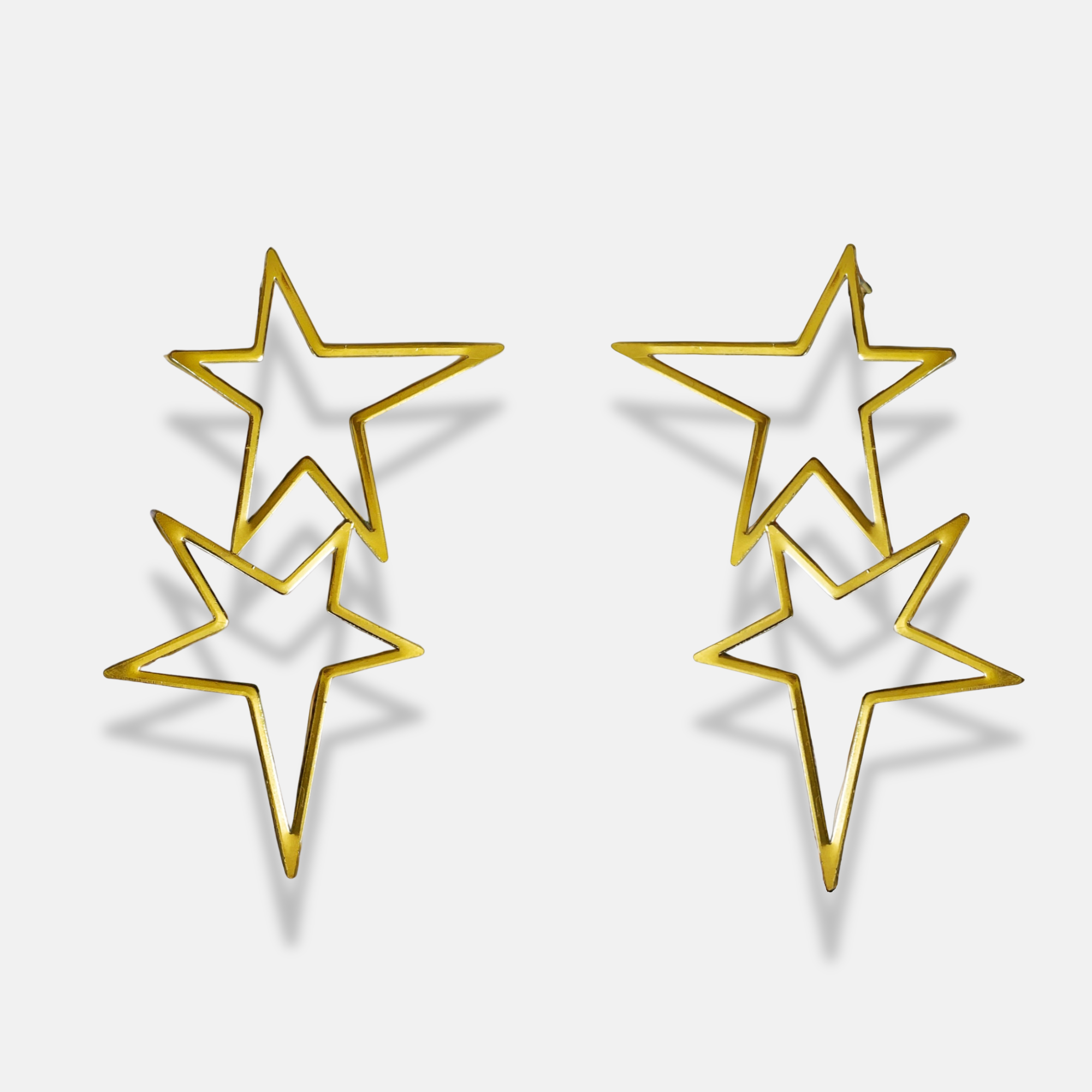 Aro rockero doble estrella, de gran tamaño, muy liviano, ideal para combinarlo con alguno de nuestros aros mini o usarlo como prendedor. Este se usa en la oreja izquierda.