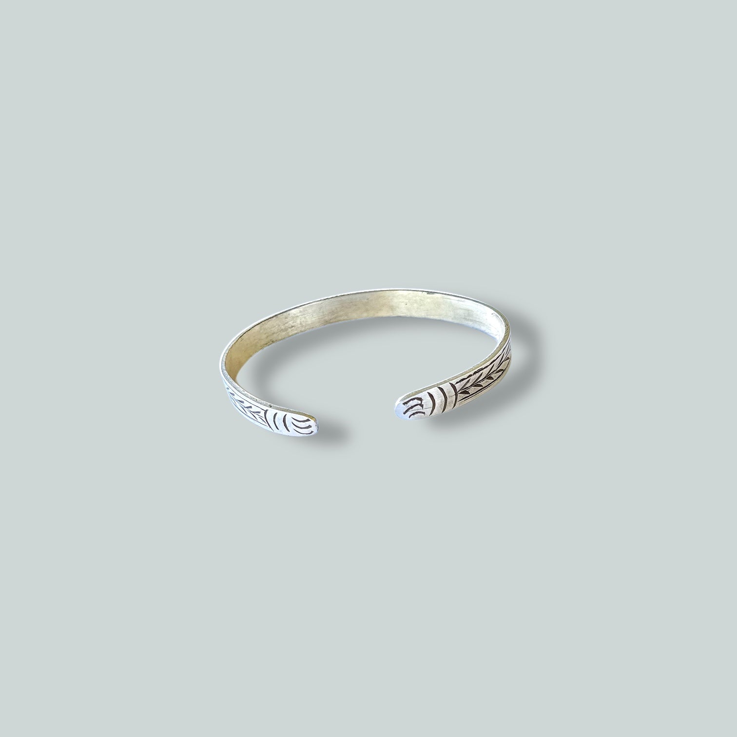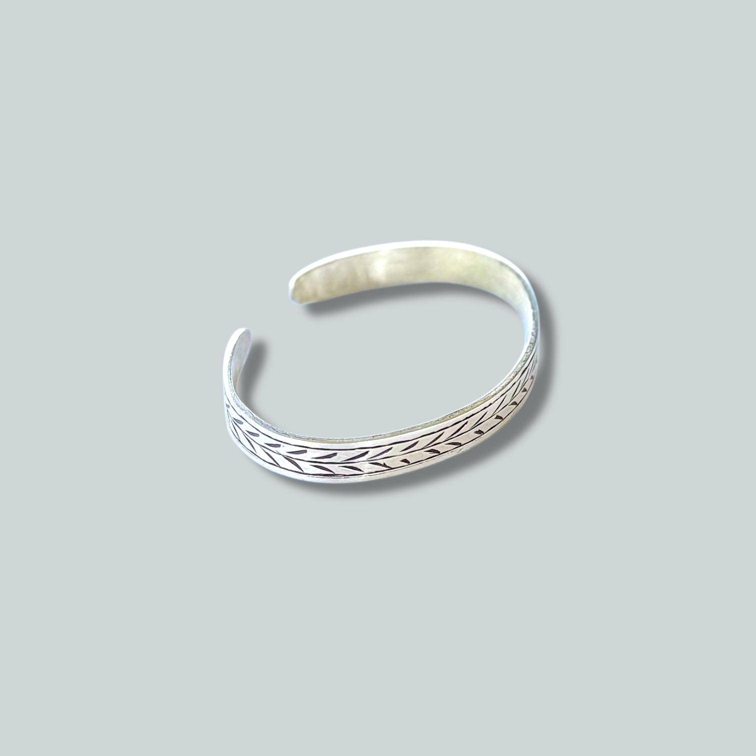 Pulsera unisex labrada a mano en plata maciza , sus líneas crean un ritmo contínuo sin límites, símbolo de presencia y espiritualidad silenciosa.