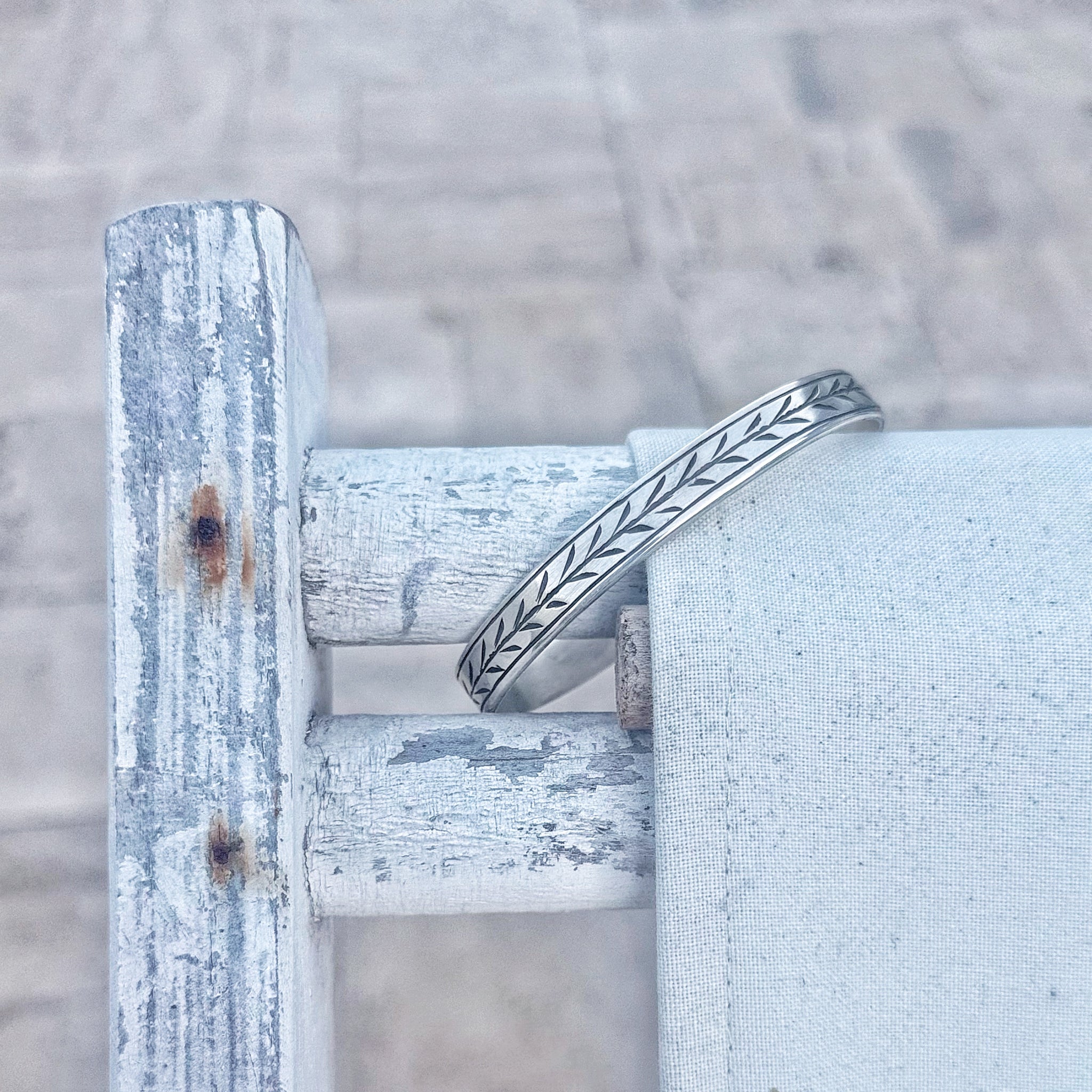 Pulsera unisex labrada a mano en plata maciza , sus líneas crean un ritmo contínuo sin límites, símbolo de presencia y espiritualidad silenciosa.