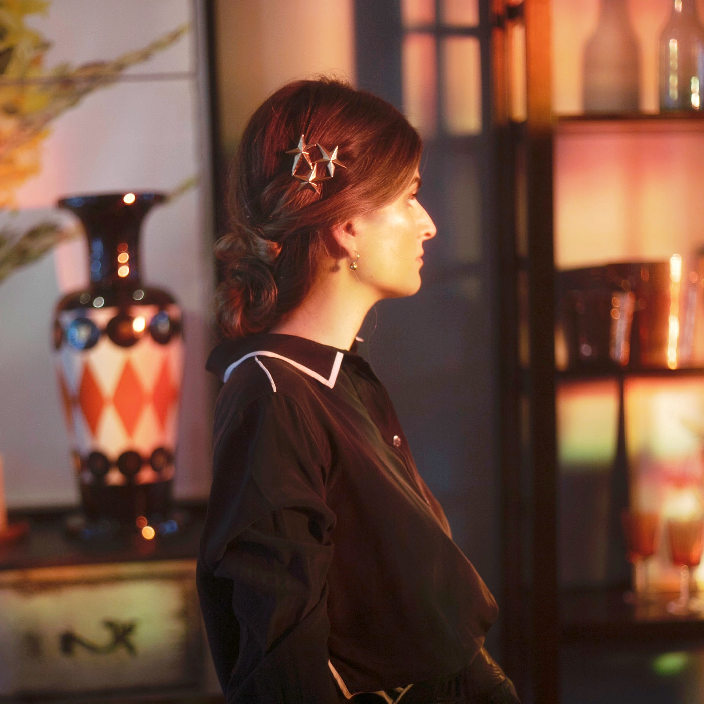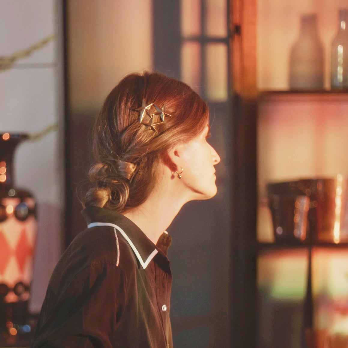 De estética celestial éste moderno tocado aportará ese toque mágico que hará brillar cualquier look. Con el pelo recogido, suelto , liso o rebelde, de cualquier manera te hará sentir la estrella del lugar. Esta fina pieza tiene peso propio, modelado en cera para luego ser elaborado en casting y terminado a mano en bronce bañado en oro. Lleva un barrete hecho en Francia, que le da el soporte necesario para que sea totalmente funcional.